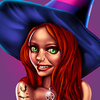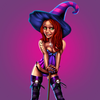 witch, halloween, hat, bats, tattoos, broom, sexy, Toon, corset, glamor, stockings, skull, girl, red, pentagram, magic