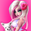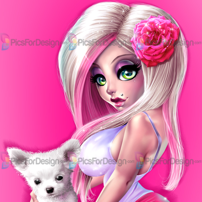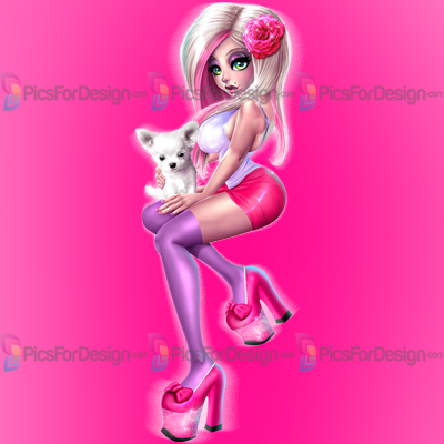 puppy, pet, toy, pink, anime, emo, white hair, blonde hair, heels, lolita, sexy, stockings, flower