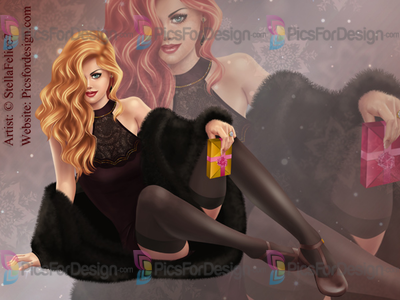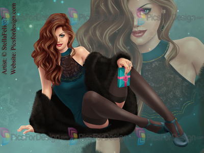 girl, beauty, eyes, lips, gift, box, hair, love, smile, romantic, fur, shoes, dress, present, purse, New Year, Christmas