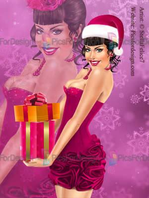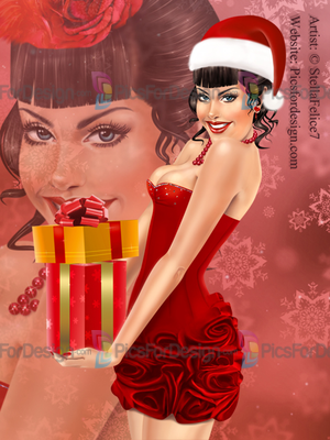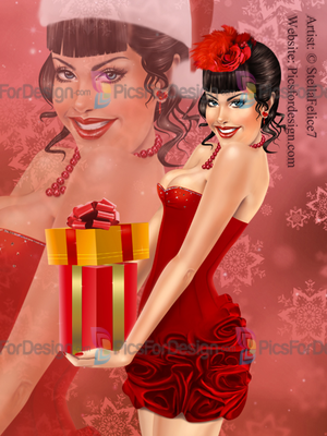 girl, beauty, eyes, lips, gift, hat, rose, hair, love, smile, love, box, dress, present, New Year, Christmas