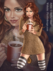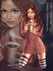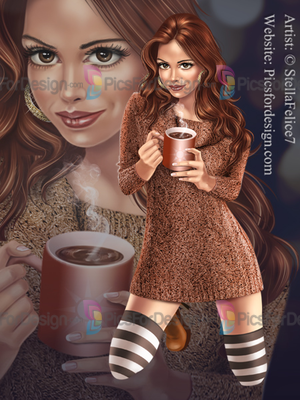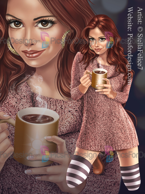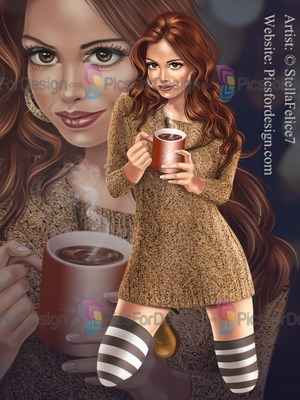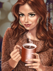 girl, hair, beauty, eyes, lips, cup, tea, coffee, sweater, shoes, romantic, brown, love, smile, dress, Valentine's day, New Year, Christmas