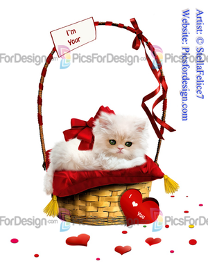 kitty, ribbon, pillow, gift, love, cute, confetti, heart, basket, bow
