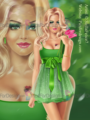 girl, beauty, eyes, lips, hair, dress, romantic, love, jewelry, smile, tattoo, flowers, tulips