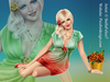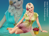 girl, sitting, beauty, love, sensual, eyes, lips, hair, shoes, dress, jewelry, basket, motional, romantic, blonde, flowers, butterfly, multiplayers, tube, red, pink, blue, green, velvet, yellow, orange