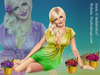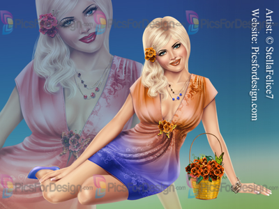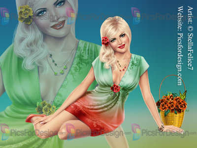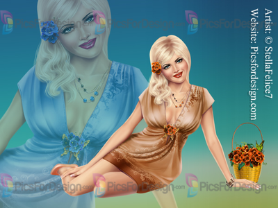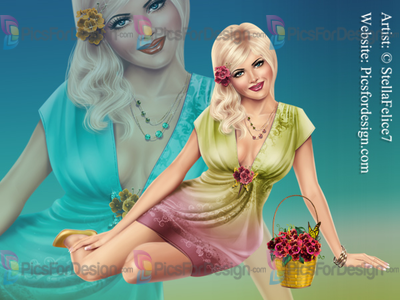 girl, sitting, beauty, love, hot, sensual, eyes, lips, hair, shoes, dress, jewelry, basket, emotional, romantic, blonde, flowers, multiplayers, spring