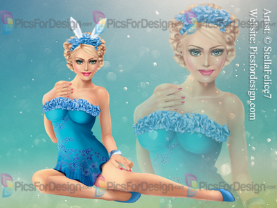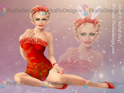 girl, sitting, beauty, love, sensual, eyes, lips, hair, shoes, dress, romantic, blonde, flowers, ears, rabbit, sexy, multiplayers, spring