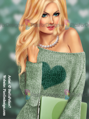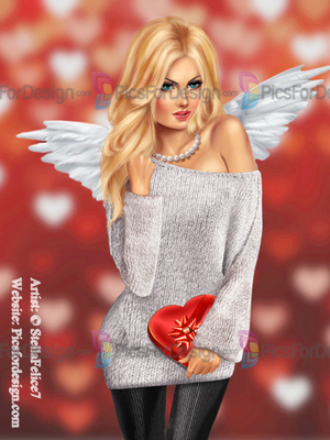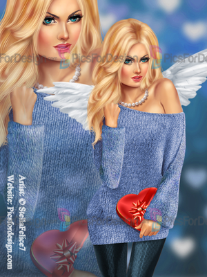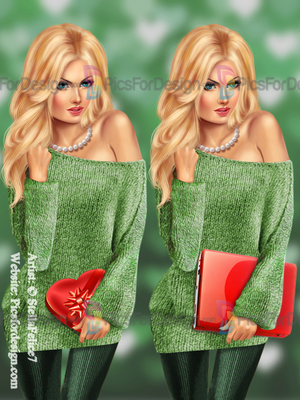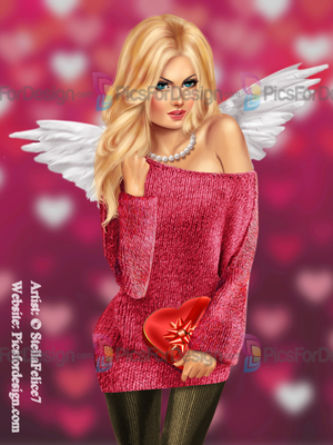 girl, sexy, beauty, angel, wigs, heart, pearls, sweater, gift, box, laptop, love, eyes, multiplayers, pin-up, tube, valentine's day, smiling, beautiful