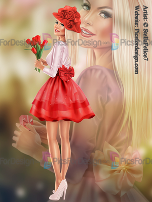 girl, eyes, smile, beauty, gift, box, hat, tulips, lily of the valley, shamrock, dress, bow, flowers, love, romantic, multiplayers, pin-up, tube, Valentine's day, Patrick day