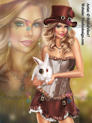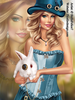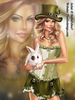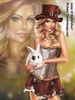 girl, eyes, smile, beauty, hat, steampunk, dress, basket, hat, jewelry, rabbit, bow, love, romantic, multiplayers, pin-up, tube, Easter, Spring, eggs