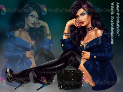 girl, eyes, black, dark, beauty, coat, jack boots, jewelry, rings, bracelets, bag, rock, cool, love, romantic, multiplayers, pin-up, tube