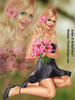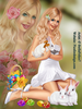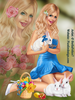 girl, eyes, blossom, spring, roses, flowers, beauty, dress, shoes, eggs, bow, rabbits, animal, basket, love, romantic, multiplayers, pin-up, tube, Easter