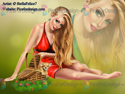 girl, eyes, hair, lips, summer, dress, basket, hat, flowers, grass, dog, poppy, earrings, mak-up, glass, cocktail, summer, love, multiplayers, tube