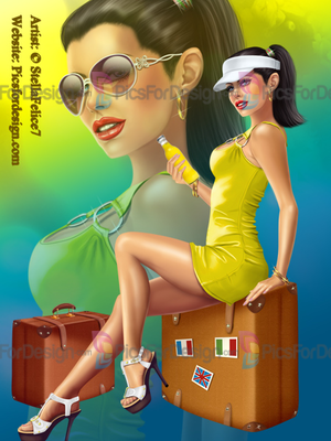 girl, eyes, hair, lips, summer, dress, suitcase, juice, bottel, jewelry, earrings, bracelet, smile, shoes, gold, mak-up, sexy, summer, love, multiplayers, tube, vacation, fan, kepi
