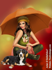 girl, eyes, hair, lips, skirt, shirt, dog, headscarf, boots, woollen, umbrella, stockings, autumn, plaits, beret, sexy, love, multiplayers, tube