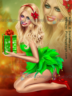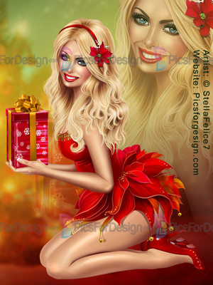girl, eyes, hair, lips, smile, dress, shoes, flower, love, gold, bell, bow, Christmas, tree, gift, box, multiplayers, tube
