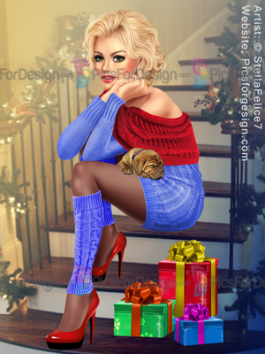 girl, eyes, hair, lips, dress, puppy, gaiters, muff, earmuffs, sweater, silk stockings bow, gift, box, love, Christmas, winter, multiplayers, tube