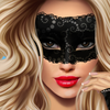 girl, eyes, hair, lips, dress, gloves, black, mask, glass, champagne, love, New, Year, Christmas, winter, multiplayers