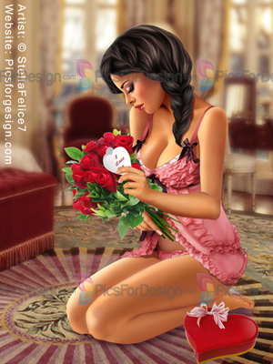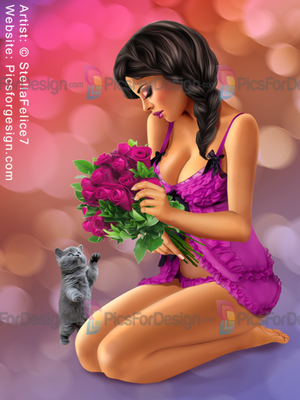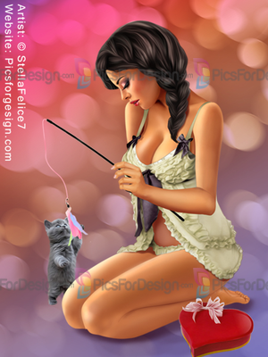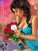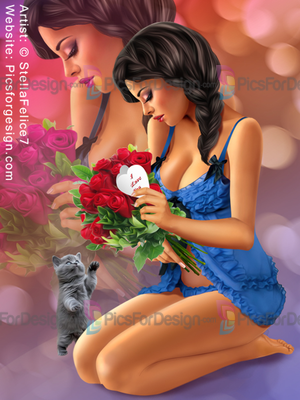 girl, eyes, hair, lips, peignoir, candies, sweet, gift, kitten, cat, toy, heart, card, morning, roses, flowers, sexy, love, Valentine's day, multiplayers, tube