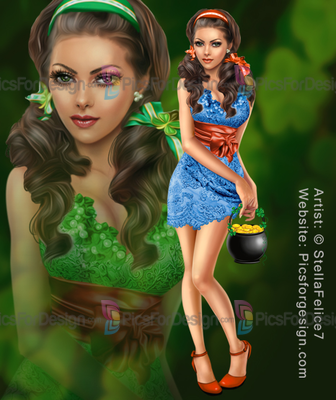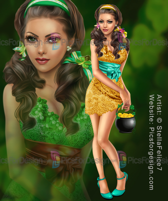 girl, eyes, hair, lips, dress, bow, feathers, bijouterie, shoes, clover, shoes, pot, gold, sexy, love, Patrick's day, multiplayers, tube
