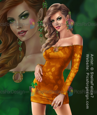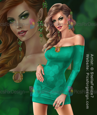 girl, eyes, hair, lips, dress, earnings, bijouterie, shoes, clover, wand, sexy, love, Patrick's day, Spring, multiplayers, tube