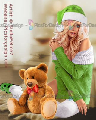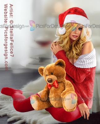 girl, pullover, stockings, slippers, coffee, marshmallow, cookies, toy, bear, santa's hat, Xmas