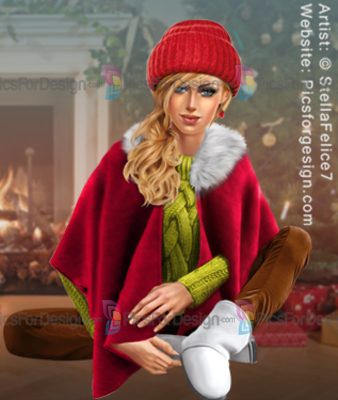 girl, pullover, sweater, poncho, santa's hat, Xmas, lamb, deer, animal, fruits, basket, footwear, sleepers, forgiving day, autumn, fall, gift, box, Christmas