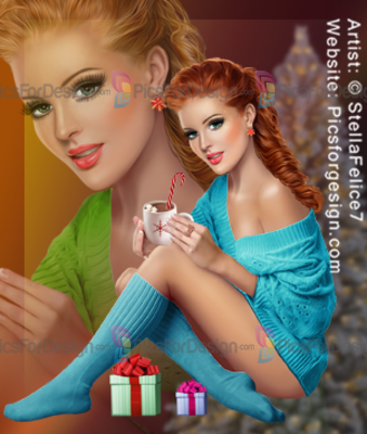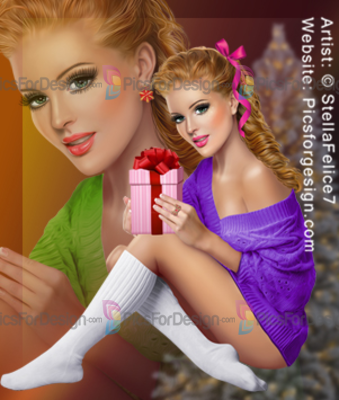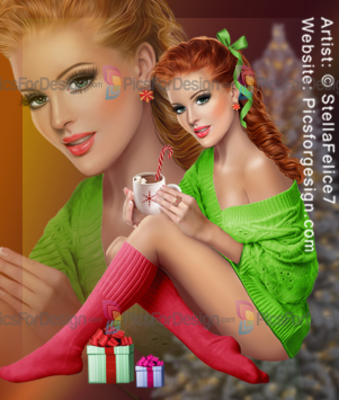 girl, tights, knee-length socks, sweater, snowflakes, earring, ring, ribbon, gift, box, chocolate, cup, cande, cap, Xmas, Christmas, Eve winter, new, year, beauty