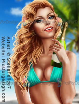 girl, smile, swimsuit, tropics, cocktail, champagne, glass, bag, gifts, hat, hot, Xmas, Christmas, Eve, new, year, beauty
