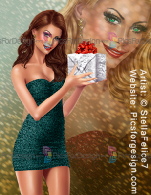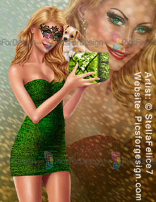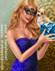 girl, dress, mask, dog, puppy, gingerbread, box, gifts, Xmas, Christmas, Eve, new, year, beauty