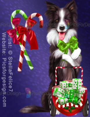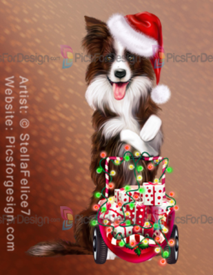 dog, puppy, garland, box, gifts, cart, hat, present, lights, candy, Xmas, Christmas, Eve, new, year