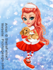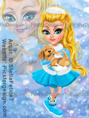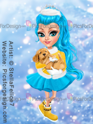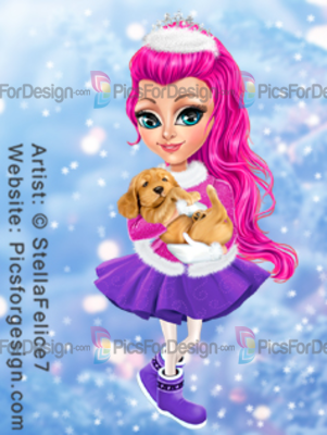 girl, child, dog, puppy, boots, skirt, fur, jacket, crown, pantyhose, Xmas, Christmas, Eve, new, year