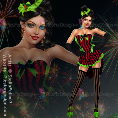 girl, sexy, dress, hat, bow, shoes, silk, stockings, gloves, jewerly, Xmas, Christmas, Eve, new, year, cabaret