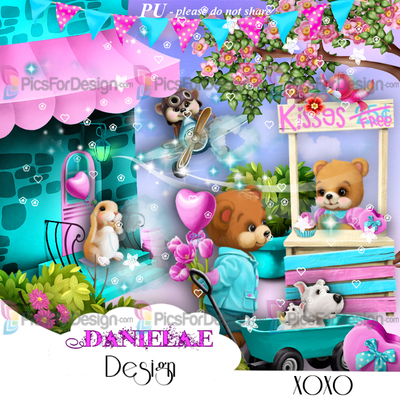 xoxo, pink, blue, yellow, boy, girl, friend, love, animal, dog, pair, fantasy, cluster