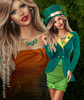 girl, dress, jacket, hat, heart, love, sexy, jewelry, earrings, gold, wand, Valentine, Patrick's, day, shamrock, brooch, glass, wine