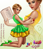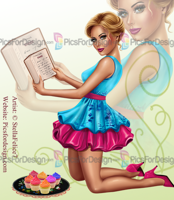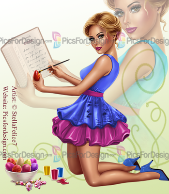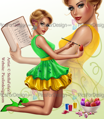 girl, sexy, dress, apron shoes, hairstyle, cakes, cookery, book, eggs, paint, brush, Easter, Spring