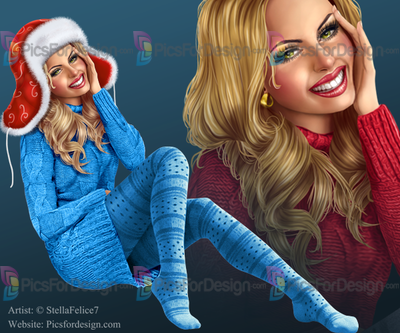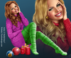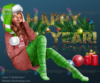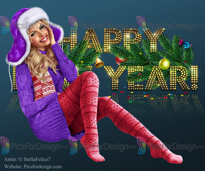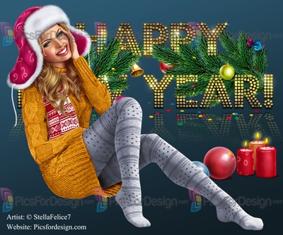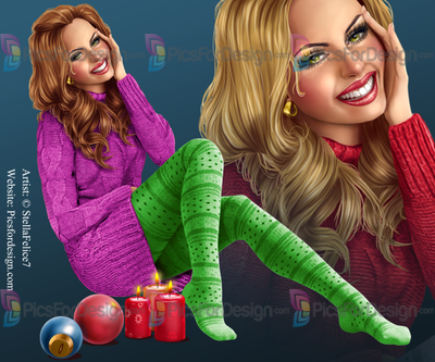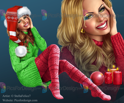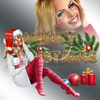 girl, dress, pantyhose, hat, cap, cap_with_ear_flaps, scarf, maffler, Christmas, gift, winter, joy, bell, garland, deck