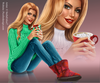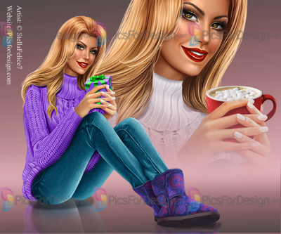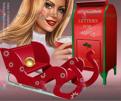 girl, sweater, jeans, Christmas, sleigh, mailbox, cocoa, cap, gift, box, winter, joy, footwear