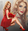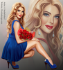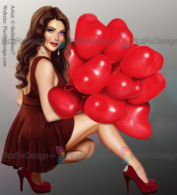 girl, woman, sexy, dress, shoes, handbag, bunch, flowers, roses, tulips, spring, Valentine, air, balloons