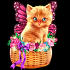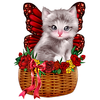 kitten, kitty, cat, pet, animal, fairy, dream, magic, butterfly, flowers, summer, spring, basket, kawaii