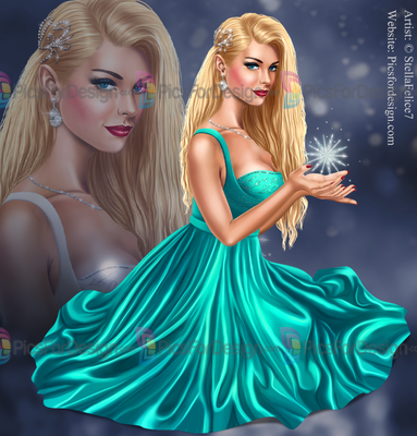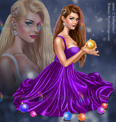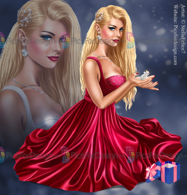 girl, dress, bijouterie, snowflake, balls, mouse, gift, box, winter, cold, new, year, NY, Christmas