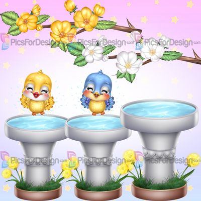birds, flowers, natural, summer, spring, love, animal, cute, fountain, farm, apple tree, birdhouse, easter