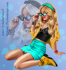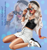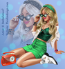 girl, radio, sunglasses, jacket, skirt