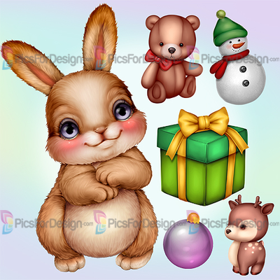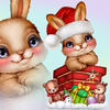 santa, christmas, rabbit, animal, gift, greeting card, teddy, deer, toy, happy, winter, kawaii, holiday, new year