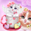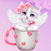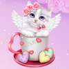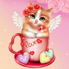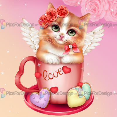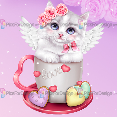 kitty, cat, kitten, valentine's day, love, friend, angel, wings, mug, cup, cookies, sweets, holiday, tea party, gift, animal, rose, flowers, hearts