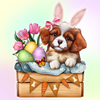 easter, religion, holiday, joy, spring, summer, village, puppy, dog, cute, toy, flowers, nature, eggs, butterfly, rabbit