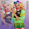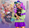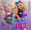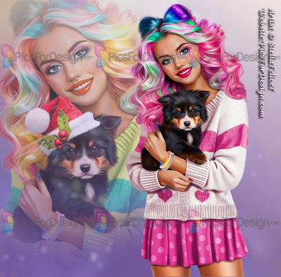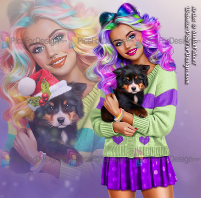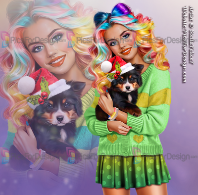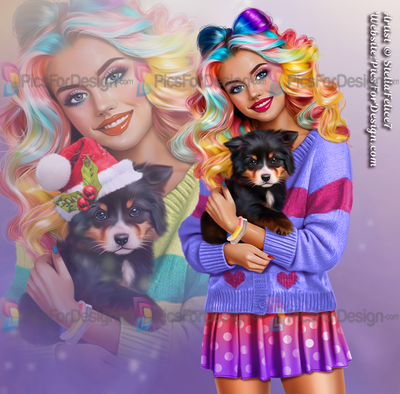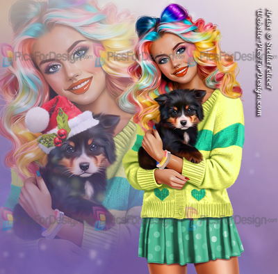 girl, skirt, cardigan, heart, smile, multicolor, hair, dog, animal, pat, puppy, Christmas, xmas