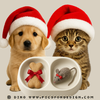Christmas, Holidays, Christmas tree, Christmas bulbs, Puppy, Kitten, Pet food bowl