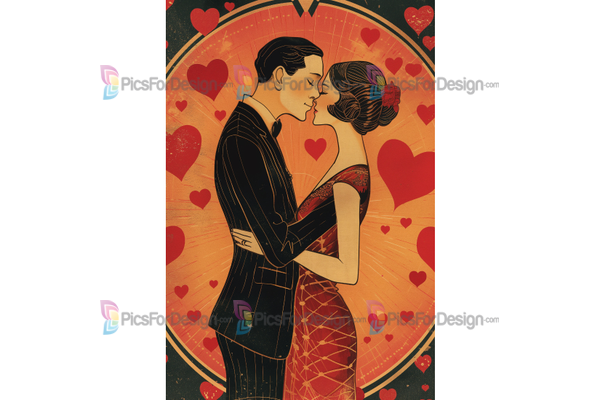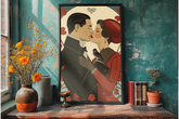 Postcard, heart, Valentines_Day, art decor style, love, couple, colorful, red, retro style, print, painting, drawing, posters, graphic design, for interior, for printing, ai_generated